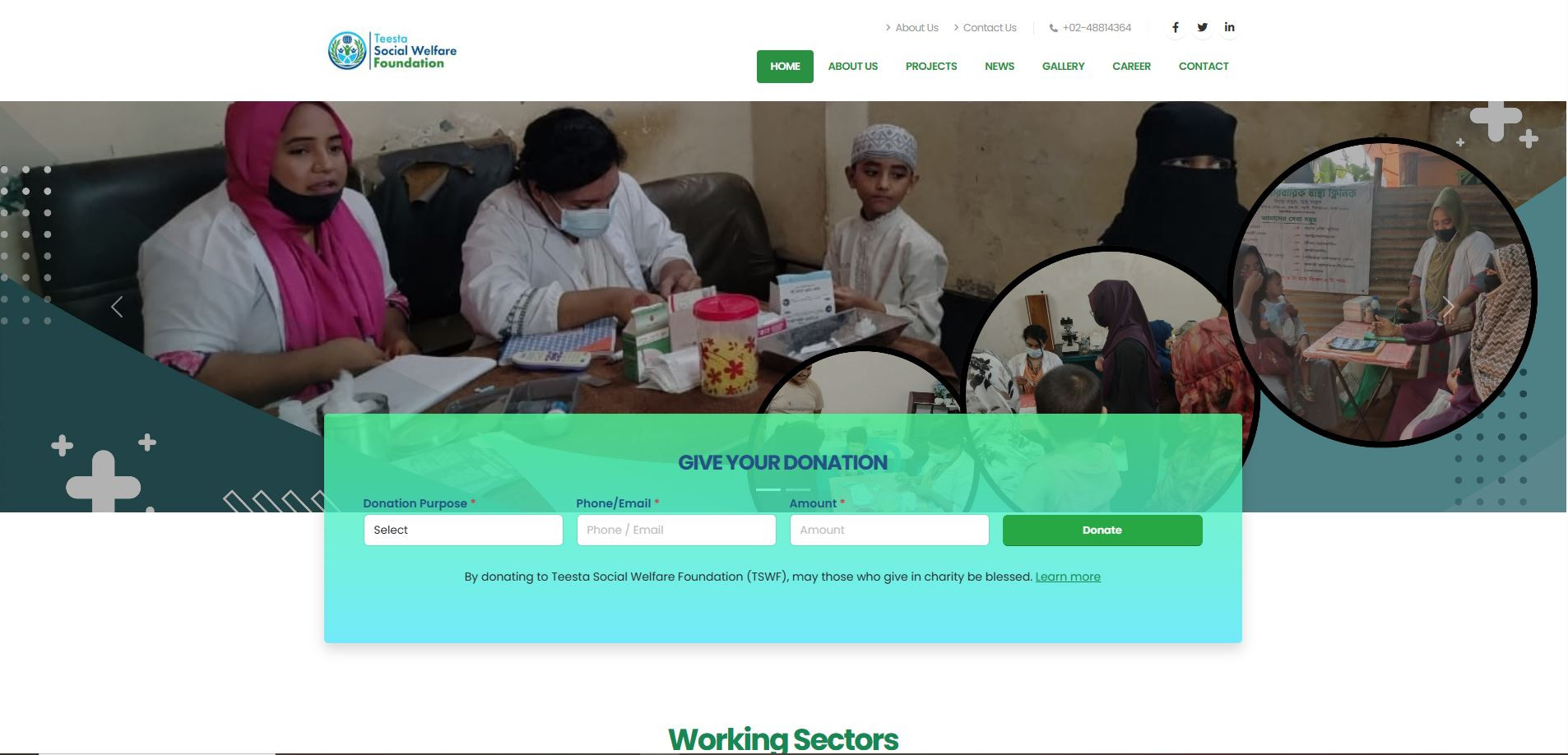 The Teesta Social Welfare Foundation (TSWF) is a non-profit, voluntary organization dedicated to improving the quality of life of disadvantaged populations through various social service initiatives. They implement diverse programs in areas such as agriculture, education, research, disaster management, poverty alleviation, health, and training.
